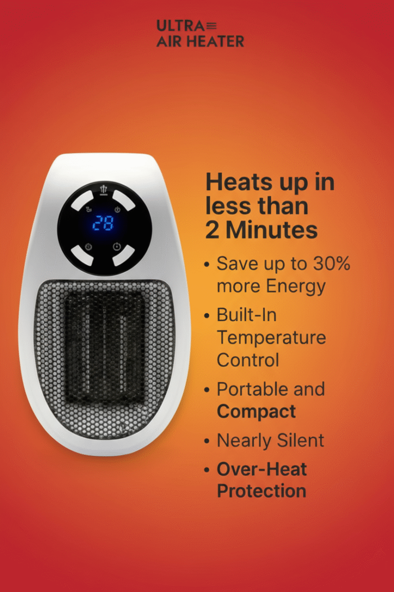 Imagine arriving home on a cold day and, in less than two minutes, feeling warm and cozy. With the Ultra Air Heater, that goes from wishful thinking to reality. Compact, portable, and efficient, it heats any room quickly and safely—without requiring installation or maintenance.